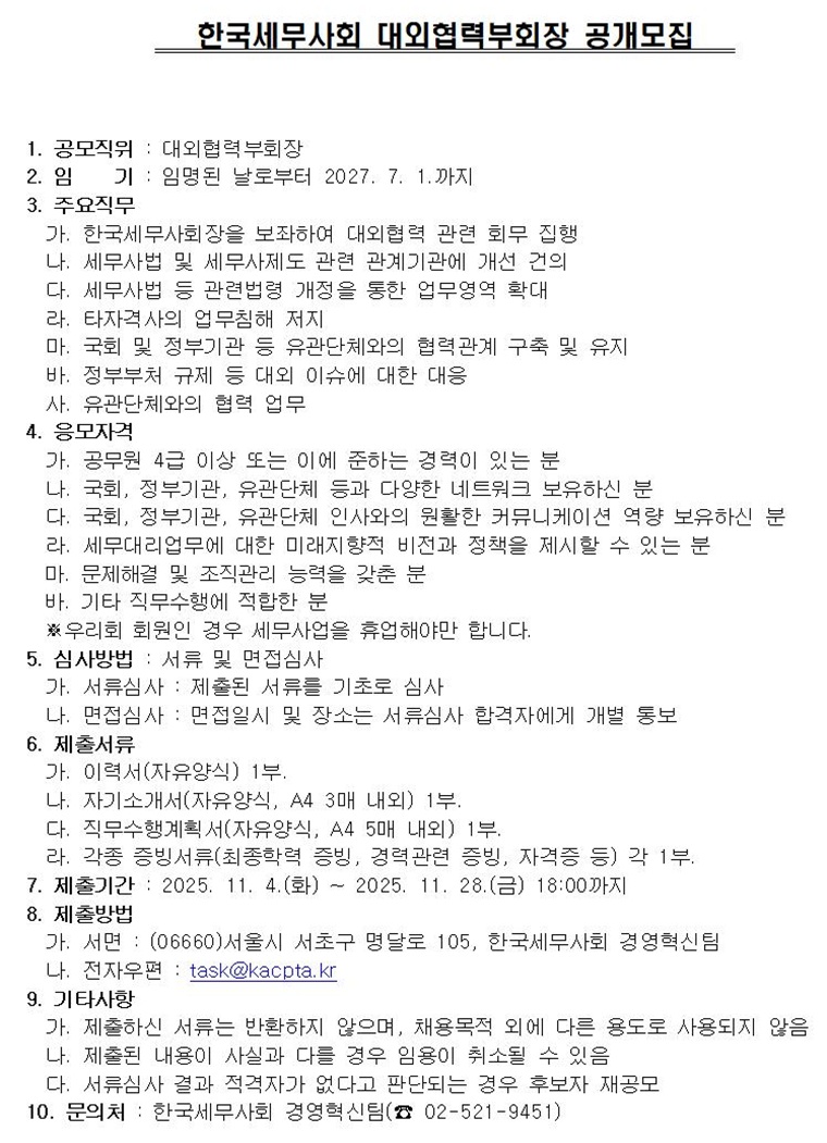 Çѱ¹¼¼¹«»çȸ ´ë¿ÜÇù·ÂºÎȸÀå °ø°³¸ðÁý