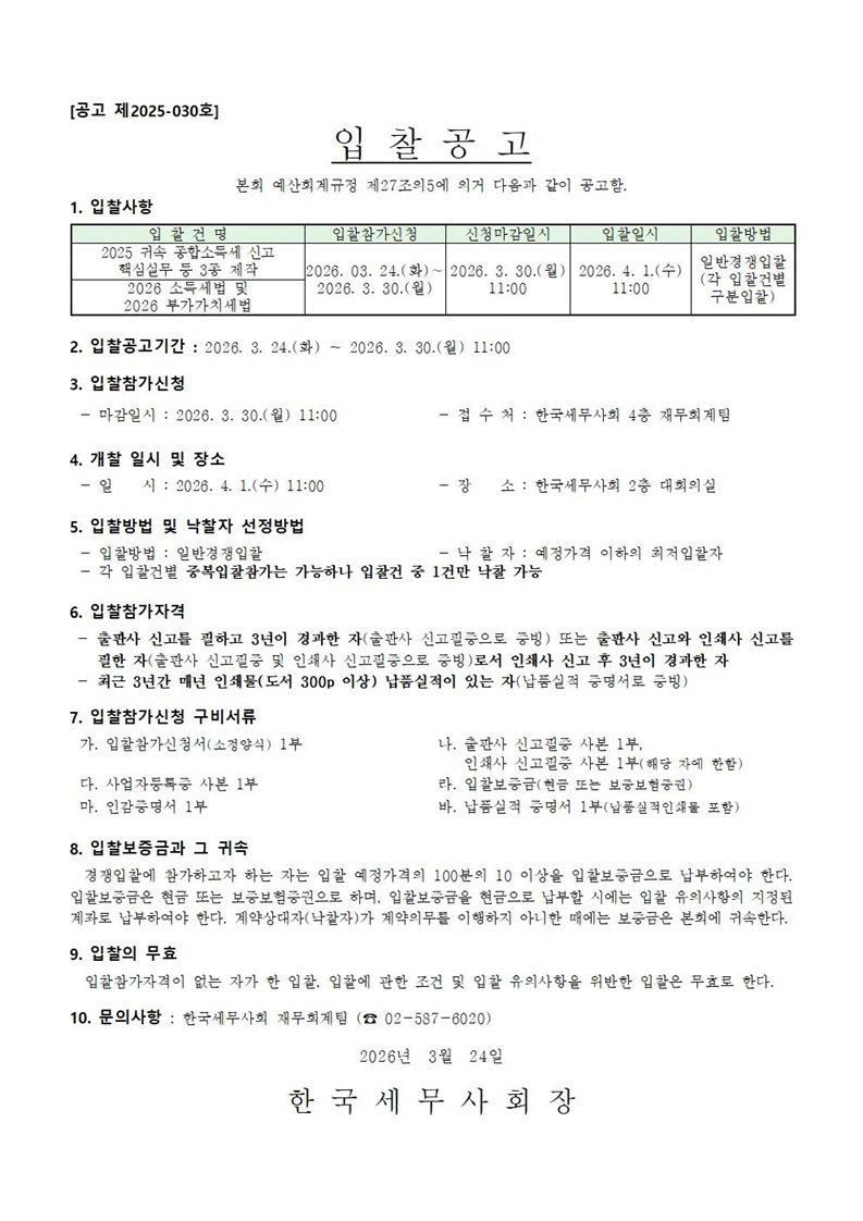 [ÀÔÂû°ø°í]¡¸2026³â ¼¼¹«»ç È«º¸ ´ëÇࡹ¾÷ü ¼±Á¤ ÀÔÂû °ø°í