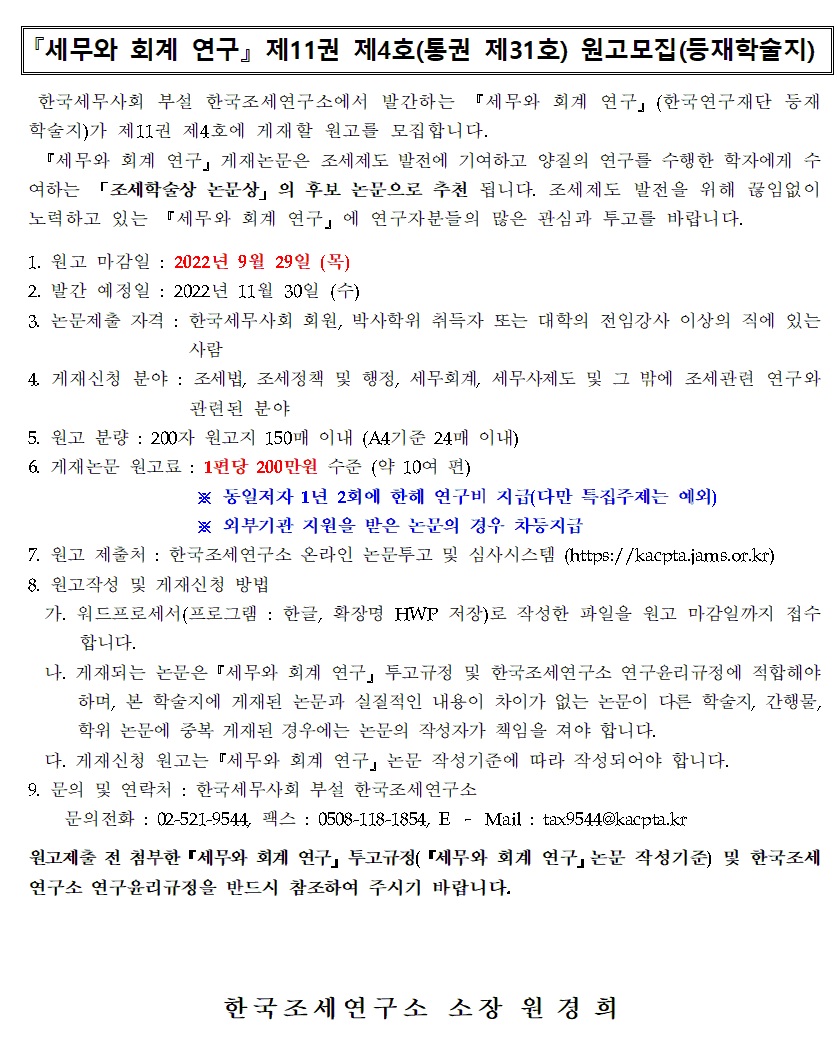 ¡º¼¼¹«¿Í ȸ°è ¿¬±¸¡» Á¦11±Ç Á¦4È£(Åë±Ç Á¦31È£) ¿ø°í¸ðÁý(µîÀçÇмúÁö)