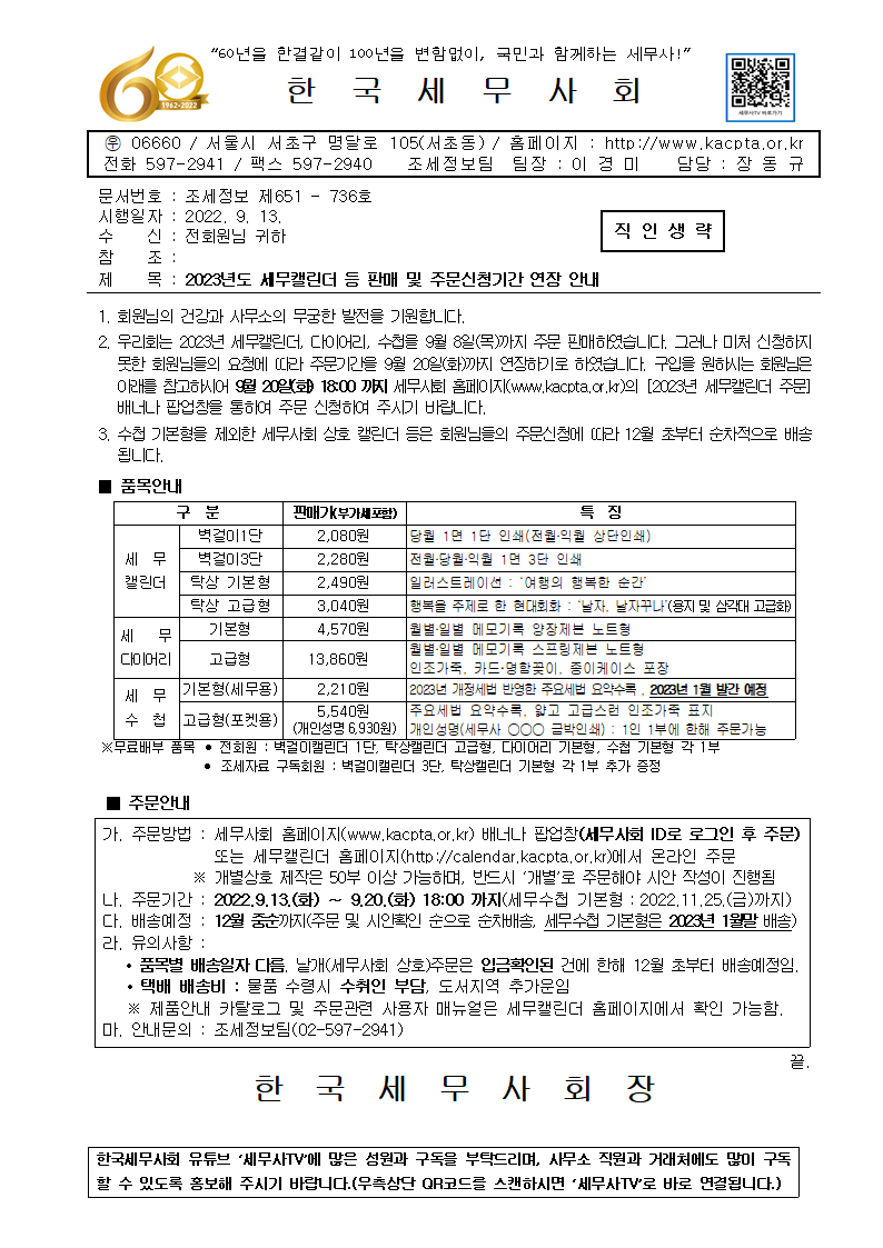 2023³âµµ ¼¼¹«Ä¶¸°´õ µî ÆÇ¸Å ¹× ÁÖ¹®½Åû±â°£ ¿¬Àå ¾È³»