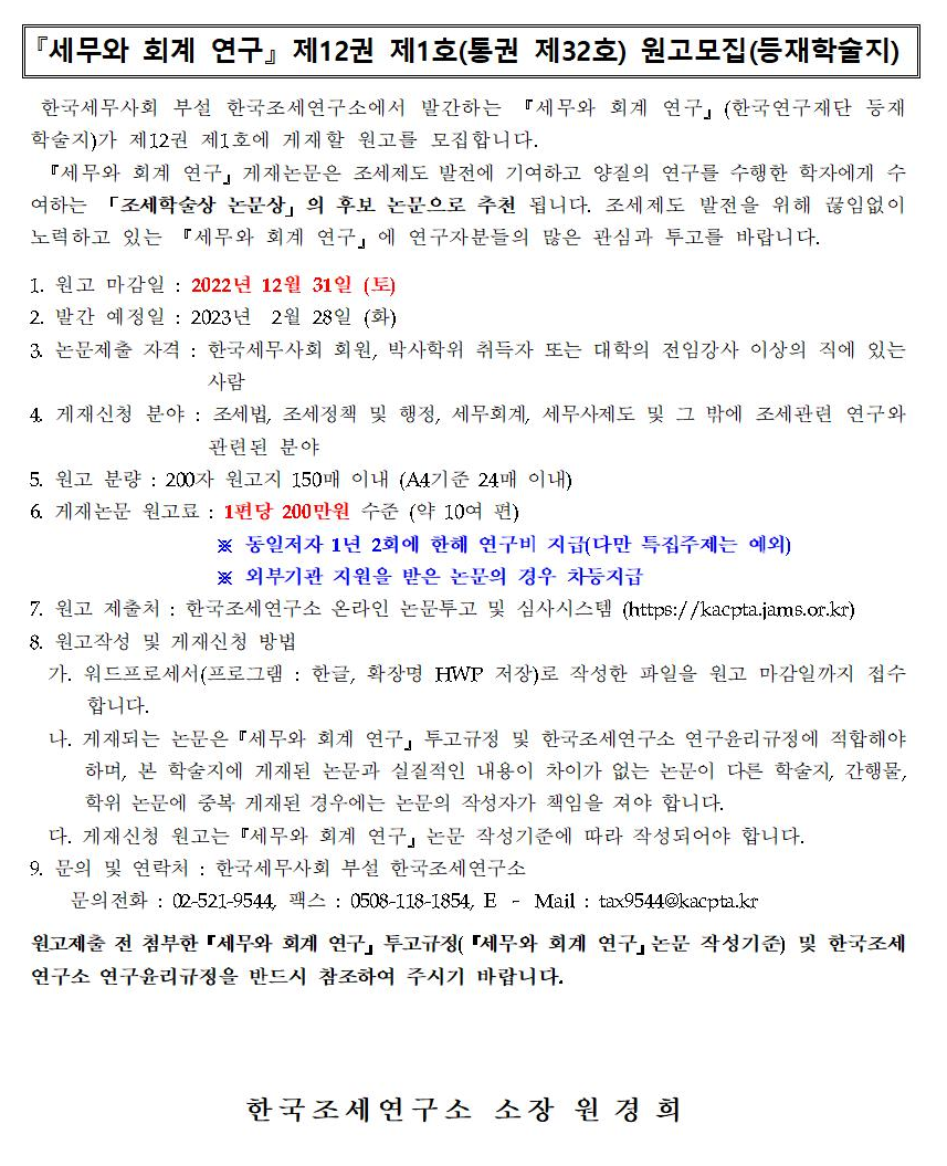 ¡º¼¼¹«¿Í ȸ°è ¿¬±¸¡» Á¦12±Ç Á¦1È£(Åë±Ç Á¦32È£) ¿ø°í¸ðÁý(µîÀçÇмúÁö)