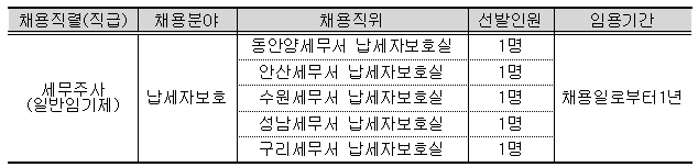 1. ä¿ëºÐ¾ß ¹× ¼±¹ß¿¹Á¤Àοø ¡Ø ±Ù¹«½ÇÀûÀÌ ¿ì¼öÇÑ °æ¿ì, °ü·Ã ¹ý·É¿¡ µû¶ó ¿¬Àå °¡´É ¡Ø ä¿ëÁ÷À§ 1°³¸¸ ¼±ÅÃÇÏ¿© Áö¿ø(Áߺ¹Áö¿ø ºÒ°¡) 2. ä¿ë´ë»ó Á÷¹«³»¿ë - ³³¼¼ÀÚ º¸È£ ¡Û ºÒº¹Ã»±¸ ¹× °ú¼¼ÀüÀûºÎ½É»ç¿¡ °üÇÑ ¾÷¹« ¡Û ³³¼¼ÀÚº¸È£À§¿øÈ¸, ±Ç¸®º¸È£¿äûÁ¦µµ µî ³³¼¼ÀÚ±ÇÀͺ¸È£¿¡ °üÇÑ ¾÷¹« 3. ÀÀ½Ã¿ø¼ Á¢¼ö ±â°£ : 2023.3.15.(¼ö) ~ 2023.3.17.(±Ý) 4. Á¢¼ö¹æ¹ý : Á¢¼ö±â°£ ³»¿¡ ÀÀ½Ã¿ø¼ ¹× Á¦Ãâ¼·ù¸¦ ÀÛ¼ºÇÏ¿© Á¢¼öó¿¡ Á÷Á¢ Á¦Ãâ(´ë¸®Á¢¼ö ½Ã À§ÀÓÀå ¹× ½ÅºÐÁõ »çº») ¶Ç´Â µî±â¿ìÆíÀ¸·Î Á¦Ãâ 5. ±âŸ ÀÚ¼¼ÇÑ »çÇ×Àº ºÙÀÓ °ø°í¹® ÂüÁ¶