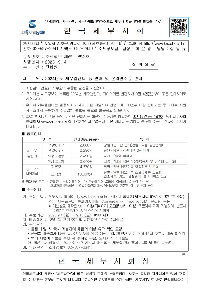 2024³âµµ ¼¼¹«Ä¶¸°´õ µî ÆÇ¸Å ¹× ¿Â¶óÀÎÁÖ¹® ¾È³»
