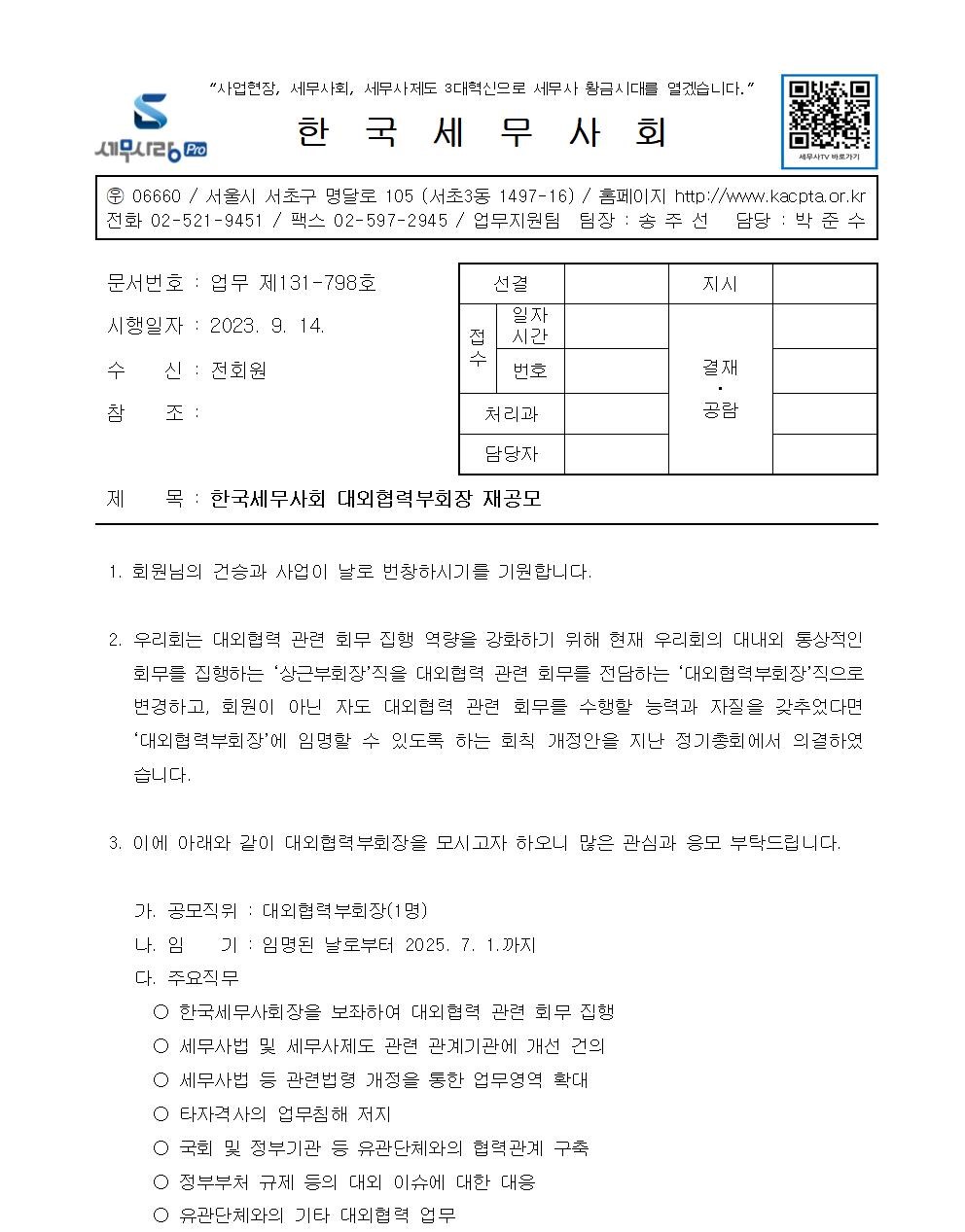 Çѱ¹¼¼¹«»çȸ ´ë¿ÜÇù·ÂºÎȸÀå Àç°ø¸ð