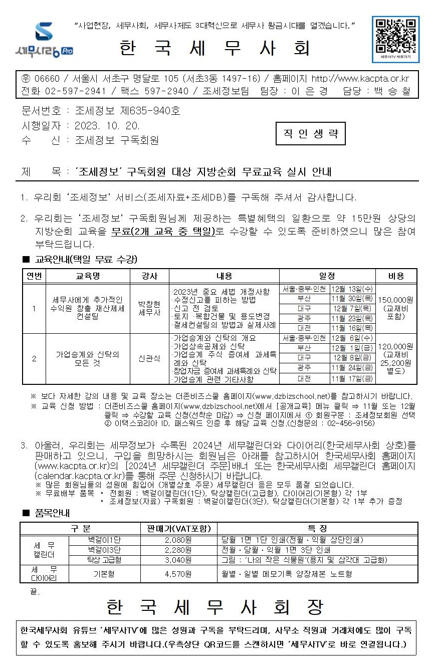 Á¶¼¼Á¤º¸ ±¸µ¶È¸¿ø ´ë»ó Áö¹æ¼øÈ¸ ¹«·á±³À° ½Ç½Ã ¾È³»