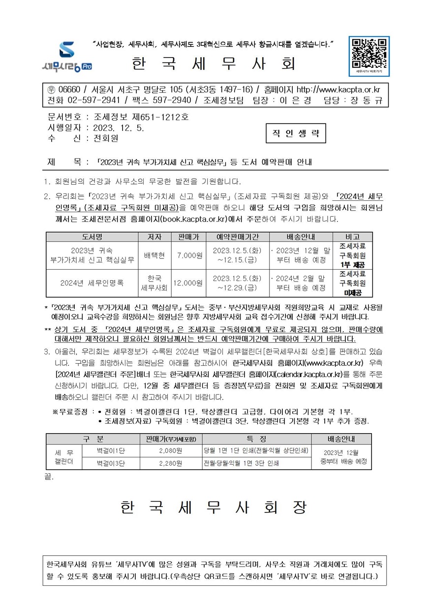 ¡¸2023³â ±Í¼Ó ºÎ°¡°¡Ä¡¼¼ ½Å°í Çٽɽǹ«¡¹µî µµ¼ ¿¹¾àÆÇ¸Å ¾È³»