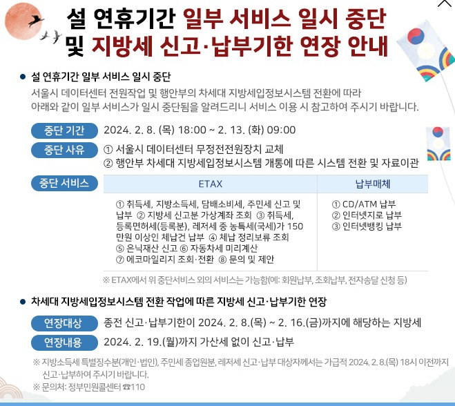 | ±ÛÁ¦¸ñ | [¼¿ïƯº°½Ã] 'Çà¾ÈºÎ' Áö¹æ¼¼ÀÔÁ¤º¸½Ã½ºÅÛ Àüȯ¿¡ µû¸¥ Áö¹æ¼¼ ½Å°í¡¤³³ºÎ±â°£ ¿¬Àå ¾È³» |