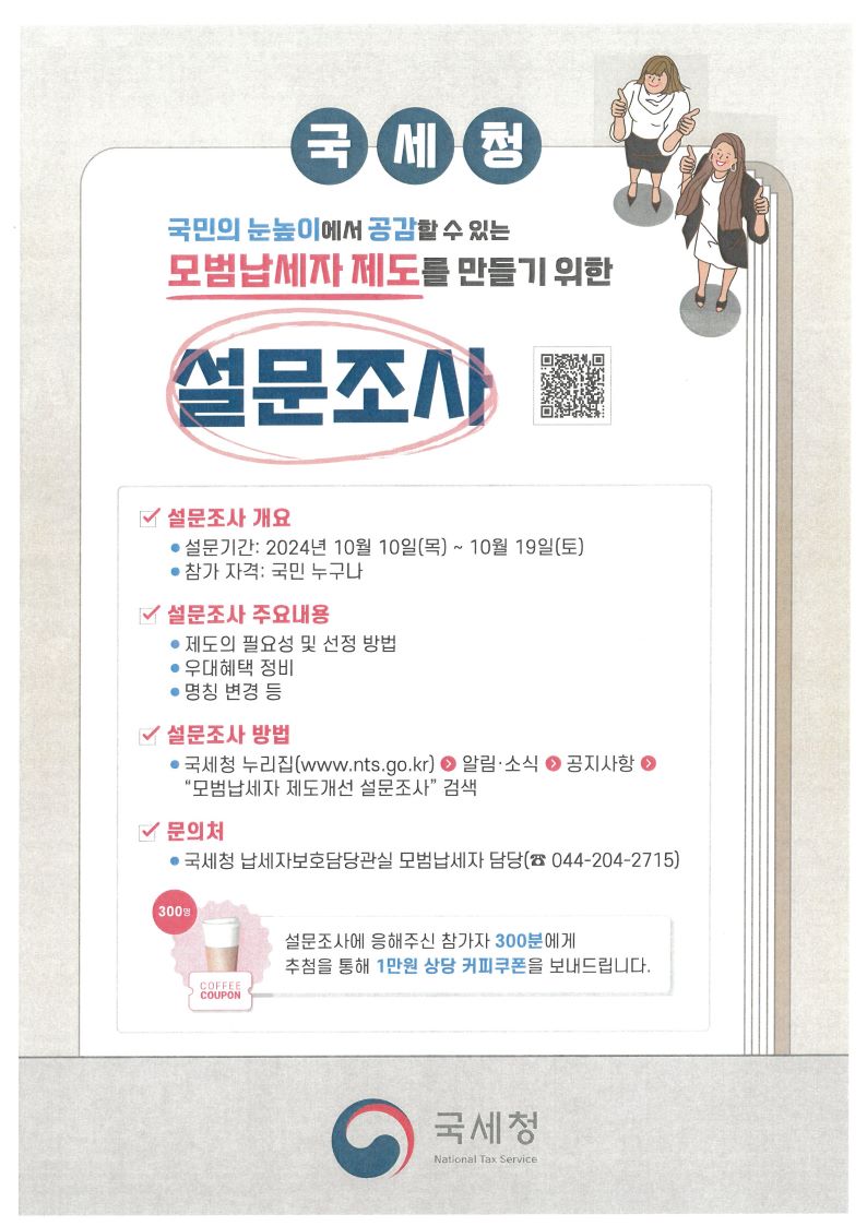 [±¹¼¼Ã»] ¿¡¼ ¸ð¹ü³³¼¼ÀÚ Á¦µµ °³¼± ¼³¹®Á¶»ç °ü·ÃÇÏ¿©, ¿ì¸® ȸ¿¡ È«º¸¿äû ÇÏ¿´±â¿¡ ¾Æ·¡¿Í °°ÀÌ ¾È³»ÇÕ´Ï´Ù.¼³¹®Á¶»ç url: https://newems1.nts.go.kr:18888/trace/survey/survey.jsp?code=7375727665793639&lang=kr
