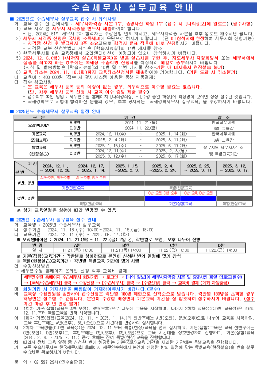 2025³â ¼ö½À¼¼¹«»ç ½Ç¹«±³À° Á¢¼ö¾È³»