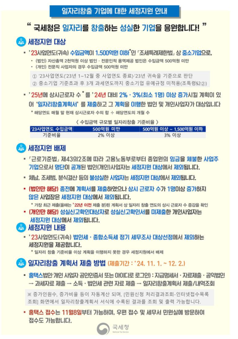 [±¹¼¼Ã»] ÀÏÀÚ¸®Ã¢Ãâ ¹× ÅõÀÚÈ®´ë ±â¾÷¿¡ ´ëÇÑ ¼¼Á¤Áö¿ø È«º¸ ¾È³»