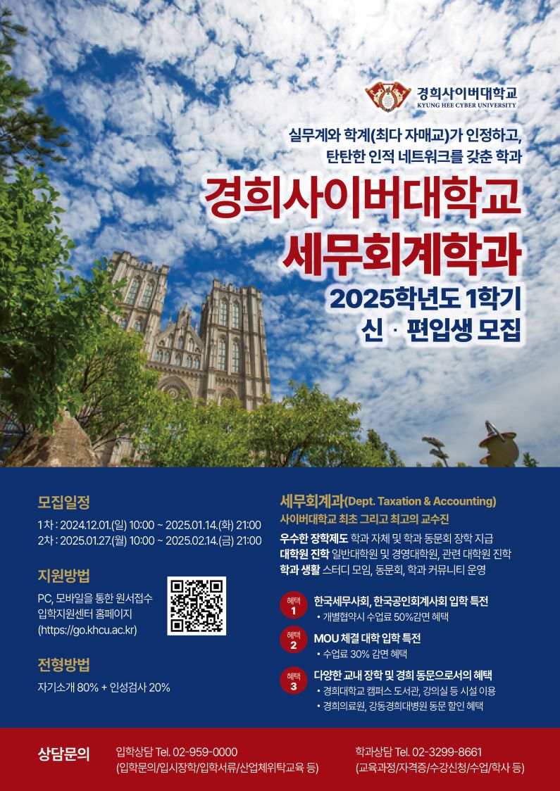[°æÈñ»çÀ̹ö´ëÇб³] ¼¼¹«È¸°èÇаú 2025Çг⵵ 1Çб⠽Å,ÆíÀÔ»ý ¸ðÁý ¾È³»