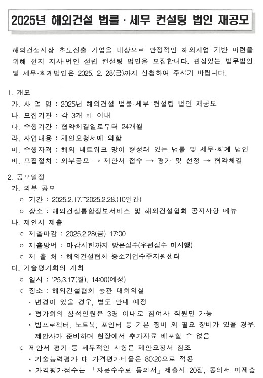 [ÇØ¿Ü°Ç¼³Çùȸ] 2025³â ÇØ¿Ü°Ç¼³ ¹ý·ü, ¼¼¹« ÄÁ¼³ÆÃ ¹ýÀÎ Àç°ø¸ð ¾È³»