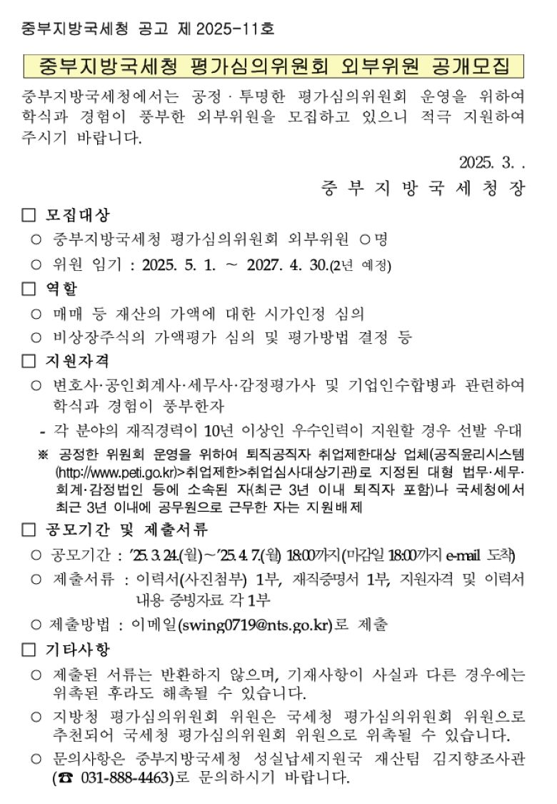 [ÁߺÎÁö¹æ±¹¼¼Ã»] Æò°¡½ÉÀÇÀ§¿øÈ¸ ¿ÜºÎÀ§¿ø °ø°³¸ðÁý ¾È³»