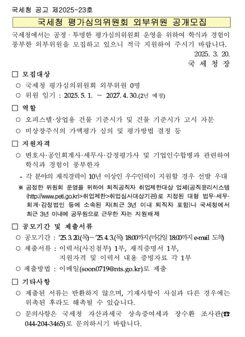2025³â ±¹¼¼Ã» Æò°¡½ÉÀÇÀ§¿øÈ¸ ¿ÜºÎÀ§¿ø °ø°³¸ðÁý °ø°í.pdf