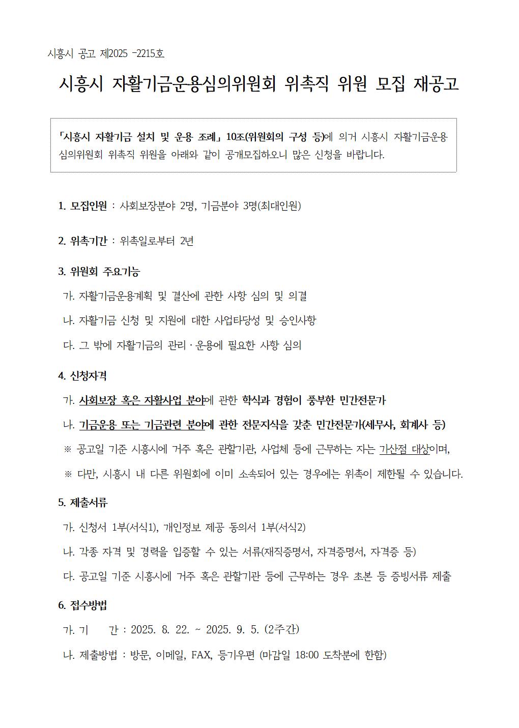[½ÃÈï½Ãû] ÀÚȰ±â±Ý¿î¿ë½ÉÀÇÀ§¿øÈ¸ À§ÃËÁ÷ À§¿ø ¸ðÁý ¾È³»