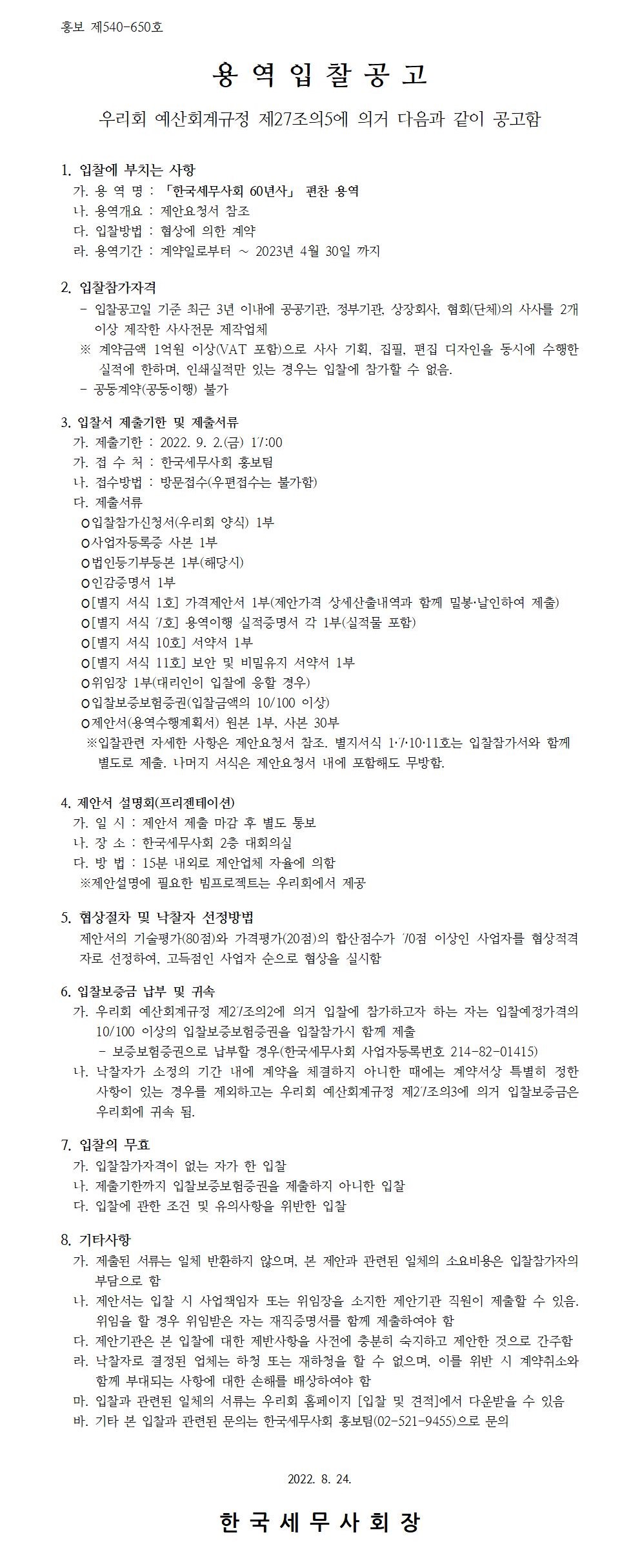 3. Çѱ¹¼¼¹«»çȸ 60³â»ç Á¦¾È¿äû¼(2022).hwp