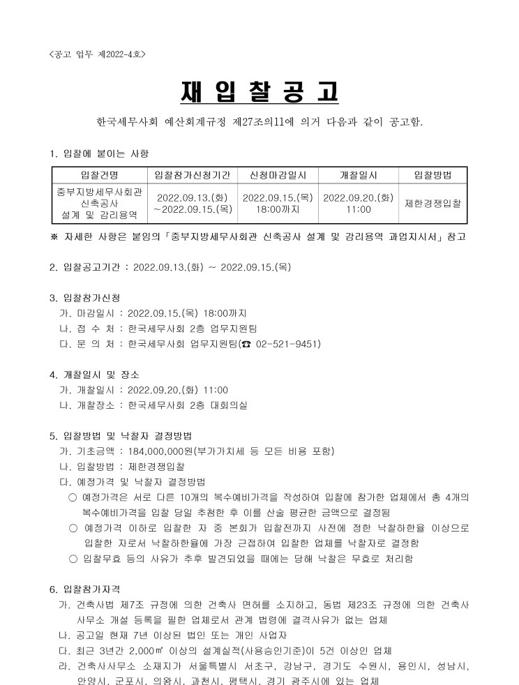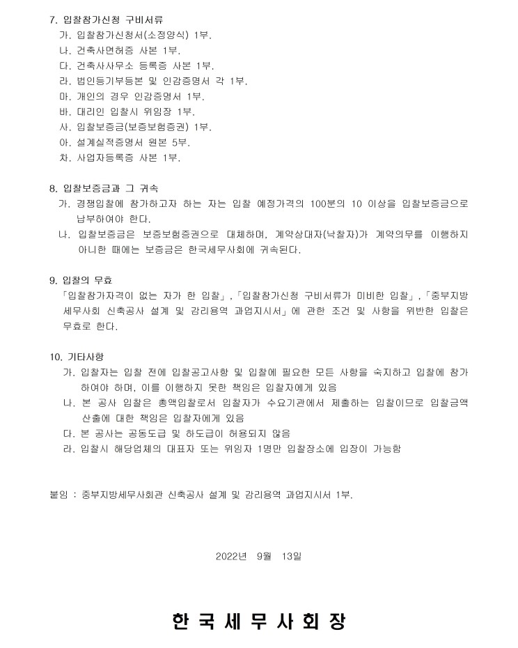 (20220913)ÁߺÎÁö¹æ¼¼¹«»çȸ°ü ½ÅÃà°ø»ç ¼³°è ¹× °¨¸®¿ë¿ª °ú¾÷Áö½Ã¼(ÀÔÂûÂü°¡½Åû¼ ¾ç½Ä Æ÷ÇÔ).hwp