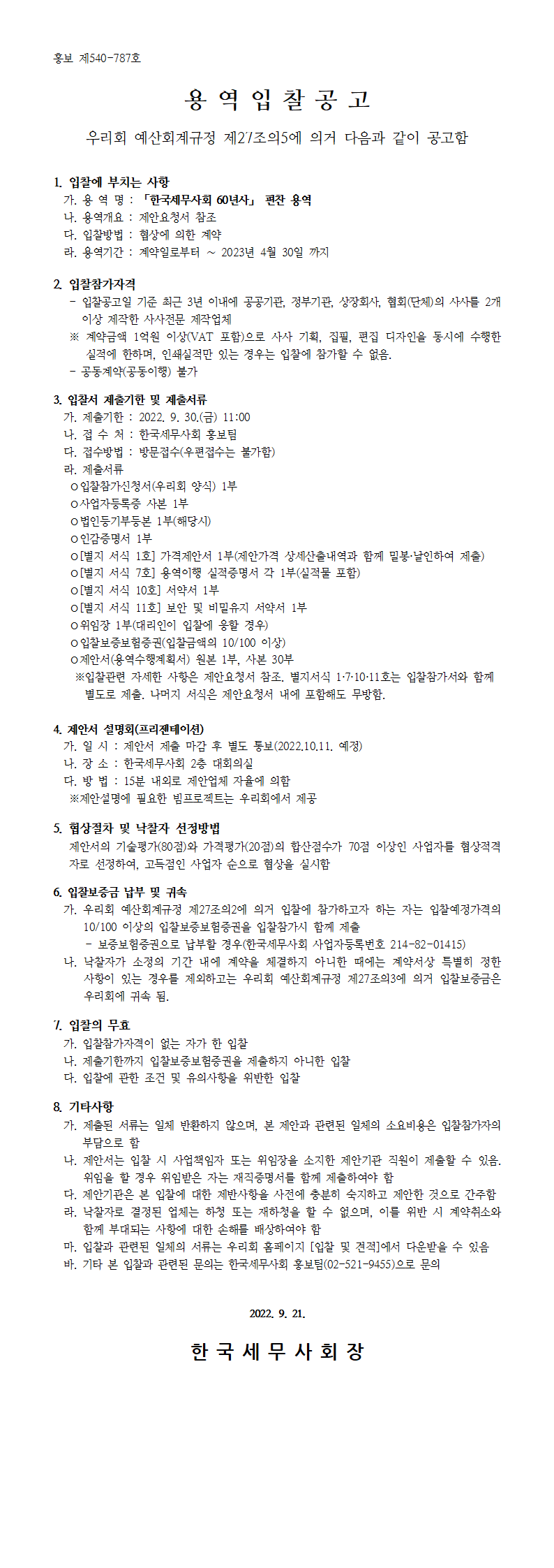 Çѱ¹¼¼¹«»çȸ 60³â»ç ÆíÂù ¿ë¿ª ÀÔÂû°ø°í