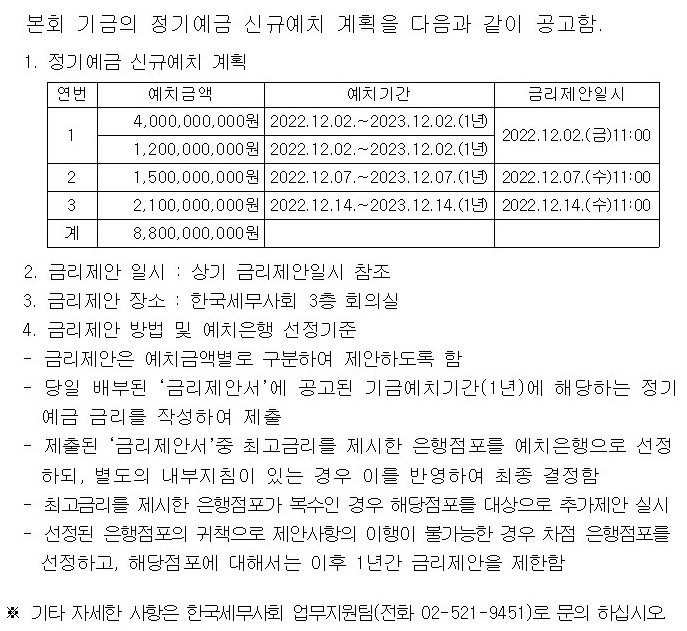 Á¤±â¿¹±Ý ½Å±Ô¿¹Ä¡ °èȹ °ø°í