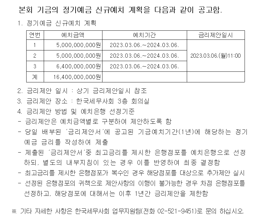 Á¤±â¿¹±Ý ½Å±Ô¿¹Ä¡ °èȹ °ø°í