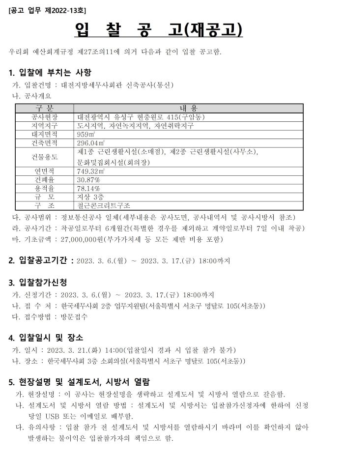 [ÀÔÂû°ø°í] ´ëÀüÁö¹æ¼¼¹«»çȸ°ü ½ÅÃà°ø»ç(Åë½Å) ÀÔÂû°ø°í(Àç°ø°í)