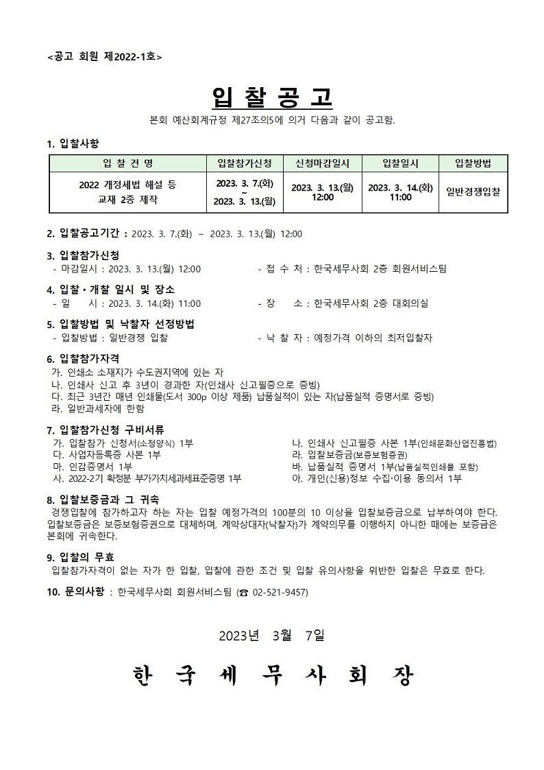 2022 °³Á¤¼¼¹ý ÇØ¼³ µî ±³Àç 2Á¾ Á¦ÀÛ ÀÔÂû°ø°í¹®(0).hwp