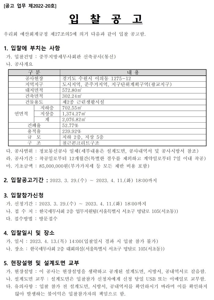ÁߺÎÁö¹æ¼¼¹«»çȸ°ü ½ÅÃà°ø»ç(Åë½Å) °ø³»¿ª¼(0).xlsx ÁߺÎÁö¹æ¼¼¹«»çȸ°ü ½ÅÃà°ø»ç(Åë½Å) ½Ã¹æ¼(0).hwp (ºÙÀÓ)ÁߺÎÁö¹æ¼¼¹«»çȸ°ü ½ÅÃà°ø»ç(Åë½Å) ÀÔÂû¾È³»¼(ÀÔÂûÂü°¡½Åû¼µî)(0).hwp |