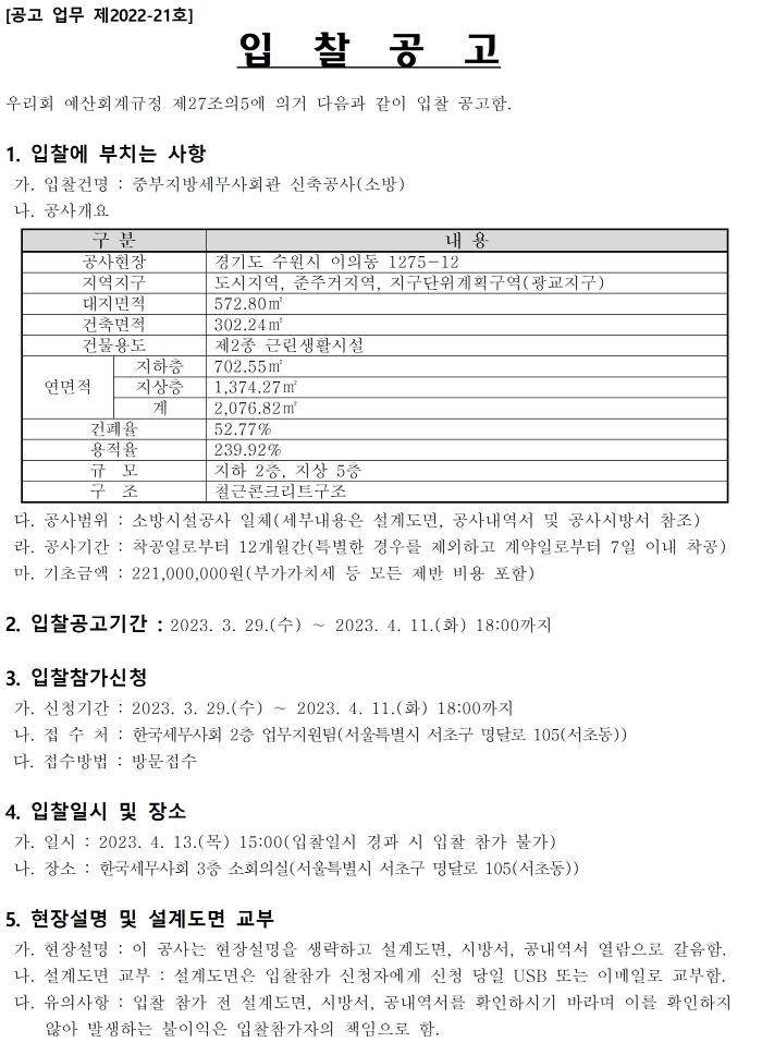 | ±ÛÁ¦¸ñ | [ÀÔÂû°ø°í] ÁߺÎÁö¹æ¼¼¹«»çȸ°ü ½ÅÃà°ø»ç(¼Ò¹æ) ÀÔÂû°ø°í |