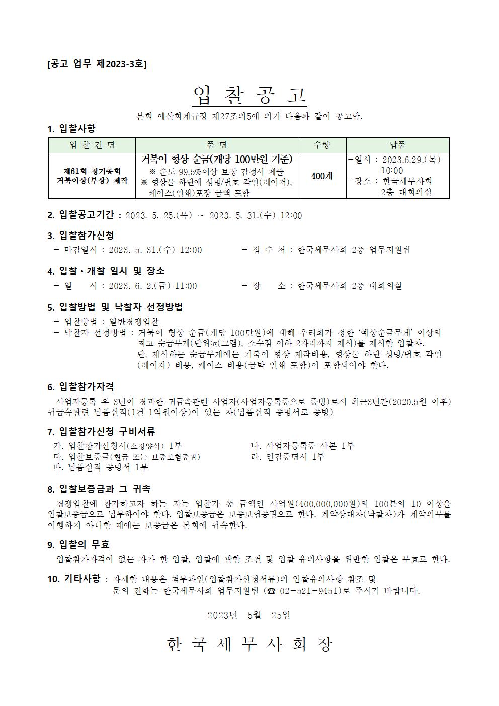 [ÀÔÂû°ø°í] Á¦61ȸ Á¤±âÃÑȸ °ÅºÏÀÌ»ó(ºÎ»ó) Á¦ÀÛ