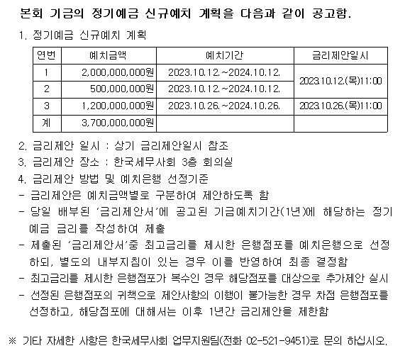 Á¤±â¿¹±Ý ½Å±Ô¿¹Ä¡ °èȹ °ø°í