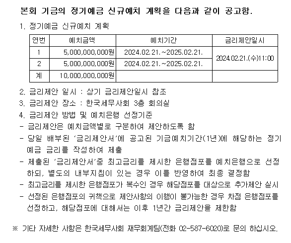 ±ÛÁ¦¸ñ Á¤±â¿¹±Ý ½Å±Ô¿¹Ä¡ °èȹ °ø°í