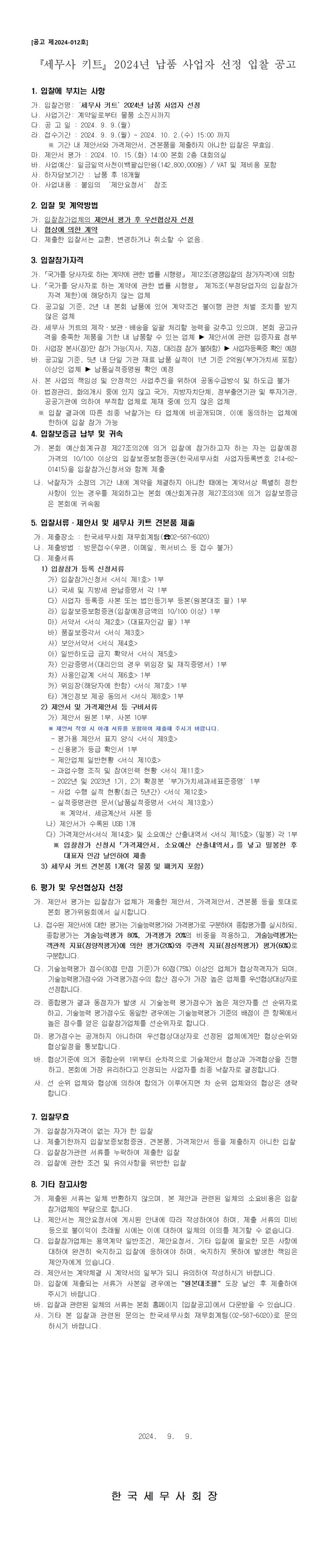 ¡¸¼¼¹«»ç ŰƮ¡¹2024³â ³³Ç° »ç¾÷ÀÚ ¼±Á¤ ÀÔÂû °ø°í¹® ¹× Á¦¾È¿äû¼.hwp