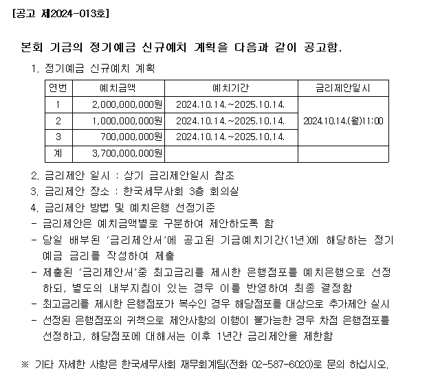 Á¤±â¿¹±Ý ½Å±Ô¿¹Ä¡ °èȹ °ø°í
