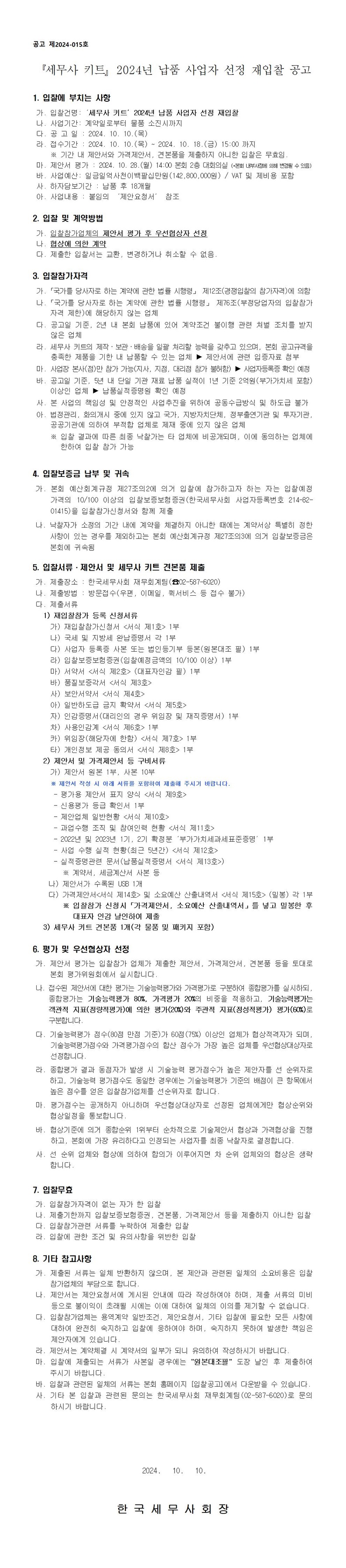 [ÀçÀÔÂû°ø°í]¡¸¼¼¹«»ç ŰƮ¡¹ 2024³â ³³Ç° »ç¾÷ÀÚ ¼±Á¤ ÀçÀÔÂû °ø°í