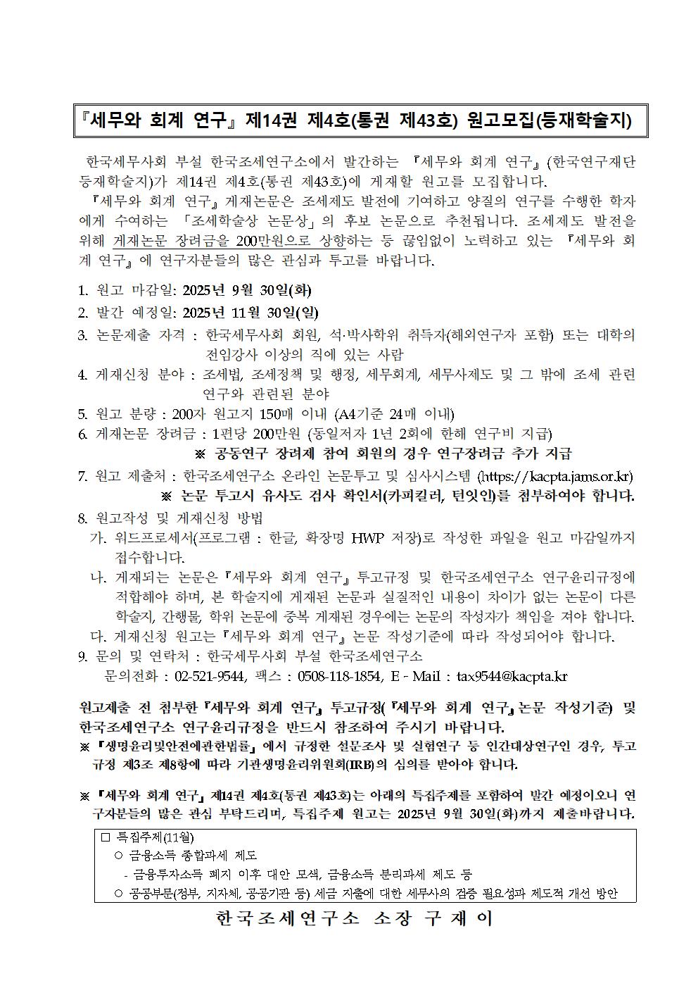 ¡º¼¼¹«¿Í ȸ°è ¿¬±¸¡» Á¦14±Ç Á¦4È£(Åë±Ç Á¦43È£) ¿ø°í¸ðÁý(µîÀçÇмúÁö)