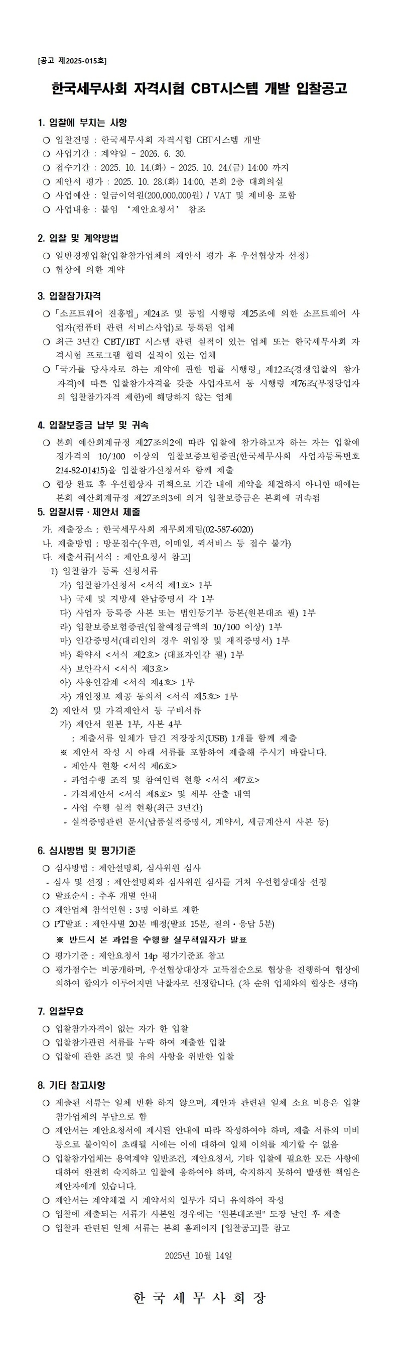 [ÀÔÂû°ø°í]¡¸Çѱ¹¼¼¹«»çȸ ÀڰݽÃÇè CBT½Ã½ºÅÛ °³¹ß¡¹ÀÔÂû °ø°í