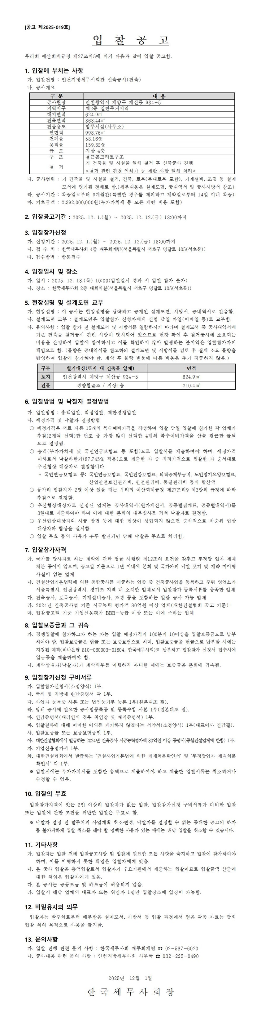 [ÀÔÂû°ø°í]¡¸ÀÎõÁö¹æ¼¼¹«»çȸ°ü ½ÅÃà °ø»ç(°ÇÃà) ½Ã°ø¾÷ü ¼±Á¤¡¹ÀÔÂû °ø°í