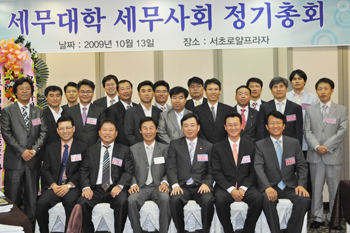 ¡ãÁö³ 14ÀÏ ¿¸° ¼¼¹«´ë¼¼¹«»çȸ 2009³â Á¤±âÃÑȸ¿¡¼ ½ÅÀÓȸÀåÀ¸·Î ¼±ÃâµÈ ±èÇü»ó º»È¸ ¹ýÁ¦ÀÌ»ç(¾ÕÁÙ ¿À¸¥ÂÊ ¼¼¹øÂ°)¸¦ ºñ·ÔÇÑ Âü¼®È¸¿øµéÀÌ ÇÑÀÚ¸®¿¡ ¸ð¿© ±â³äÃÔ¿µÀ» Çϰí ÀÖ´Ù.